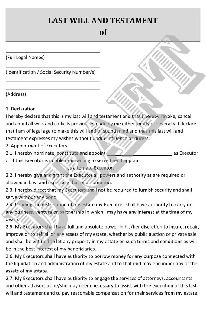 Virginia Last Will Form