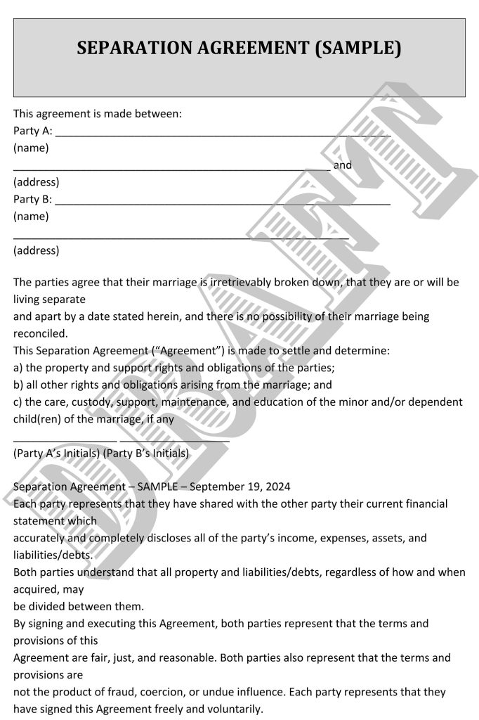 Virginia Separation Agreement Form